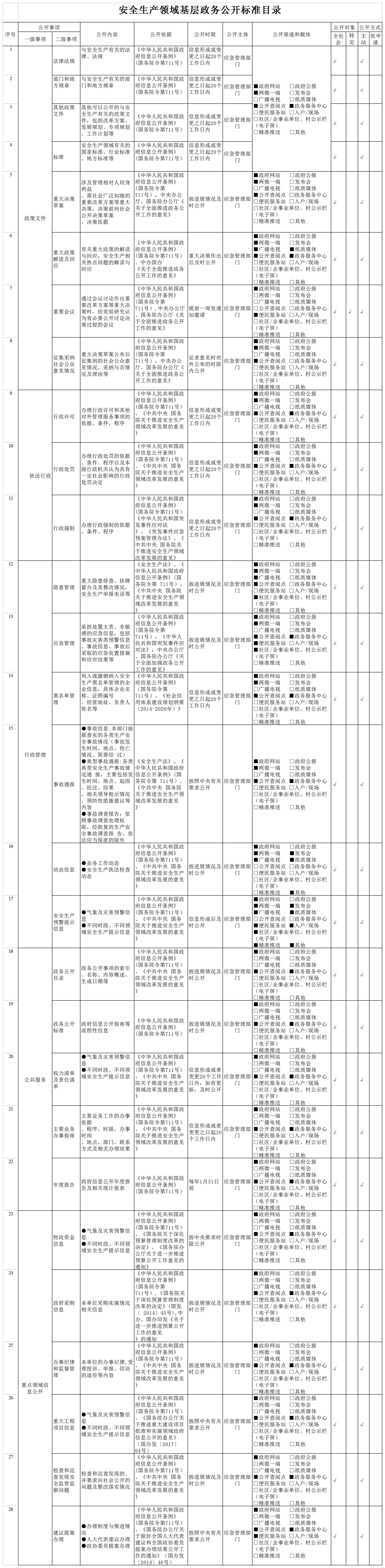 安全生产领域基层政务公开标准目录