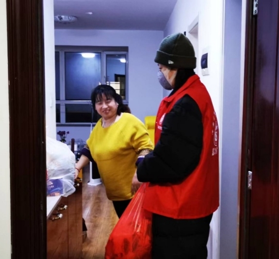 4月3日晚上8点多,党员志愿者麻利正在同社工一起准备核酸检测物资,这时社区接到求助电话,住在恒大滨江左岸的居民常宁,希望社区为住在文欣苑患有小儿麻痹症的妈妈吴红艳送一些生活用品。在得知这一情况后,麻利立即说到:“我去吧!”。天色已晚,身为一名女同志,她一个人提起两大袋重重的生活用品,送到了吴红艳家中,并对吴红艳说到:“大姐,您行动不便,有什么需要就找我”。居民吴红艳微笑着连连道谢。
