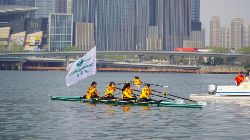活动现场,辽宁省反兴奋剂中心副主任、2008年北京奥运会赛艇女子四人双桨项目冠军成员唐宾为浑南九小学校赛艇队授旗,随后“灵动教育9号”正式下水,浑南九小赛艇队的队员们乘着“灵动教育9号”在“中国最美静水赛道”上荡桨逐浪。