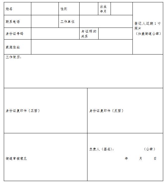 证明人信息登记表