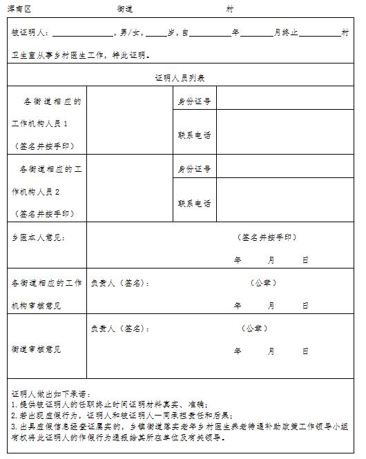 1.持有卫生行政部门颁发的赤脚医生证书、乡村医师证书、乡村医师执业证书,在村卫生室工作的执业医师(助理)证书、医疗机构执业许可证等或能出具本方案要求的人证、物证材料的从事乡村医生工作人员,且其执业地点在现浑南行政区域内。