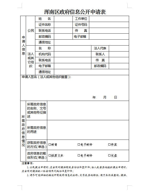 申请人可以通过传真形式提出申请,将政府信息公开申请表及身份证明复印件传真至区政府办公室。