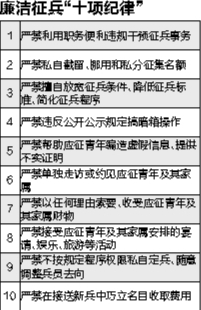 2023年征兵工作已经开始,为严肃征兵纪律、规范权力运行、强化监督问责,营造风清气正的征兵环境,沈阳警备区纪委、沈阳市征兵办公室联合开展廉洁征兵工作监督,提出征兵工作“十个不准”、廉洁征兵“十项纪律”和征管人员“五项承诺”,并公开举报电话及邮箱,受理查处各类问题线索,重点纠治征兵领域违规违纪问题。