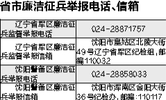 除辽宁省军区、沈阳警备区设有廉政征兵公开举报电话及公开信箱外,如果市民发现征兵工作中的违规违纪问题,还可向沈阳市759名廉洁征兵监督员进行举报。辽沈晚报记者 吕洋