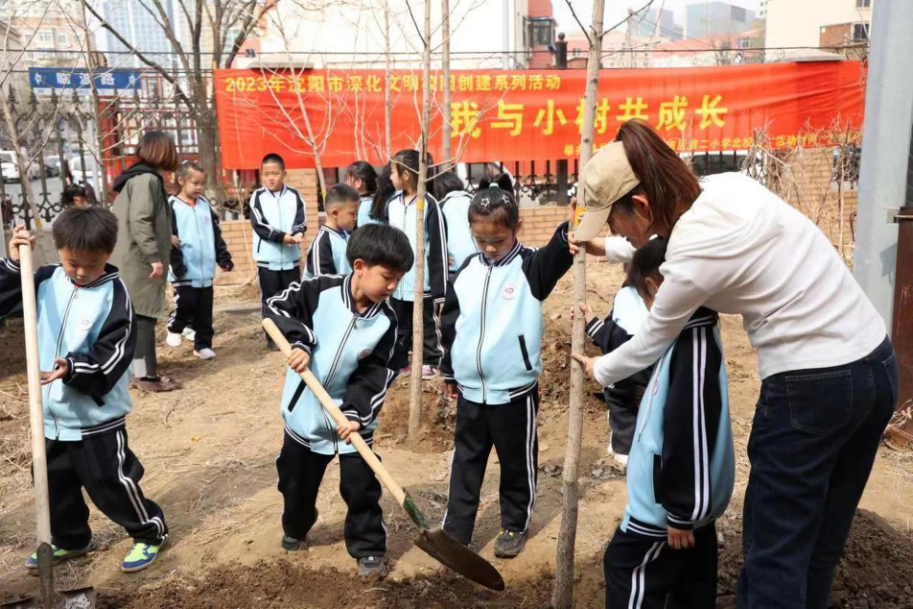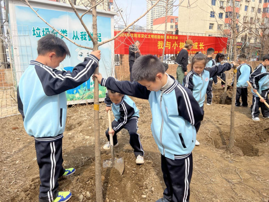 本次的植树活动,不仅在身体力行中让孩子们体会到了劳动的快乐与重要性,不仅让家长走入校门和孩子们一起美化校园环境,更是一次家校协作的积极展现,家长和学校协同一心,以身教为学生浇灌“阳光雨露”,共同期待这些一年级的“小树苗”脚踏实地,早日成长为“参天大树”,浑南二校北校区也将会把这项“护苗”活动坚持下去。在这样有温度的环境中,浑南二校北校区的学子们将“美——由内而外,爱——由心至行”的校训践行在每一个成长的瞬间。